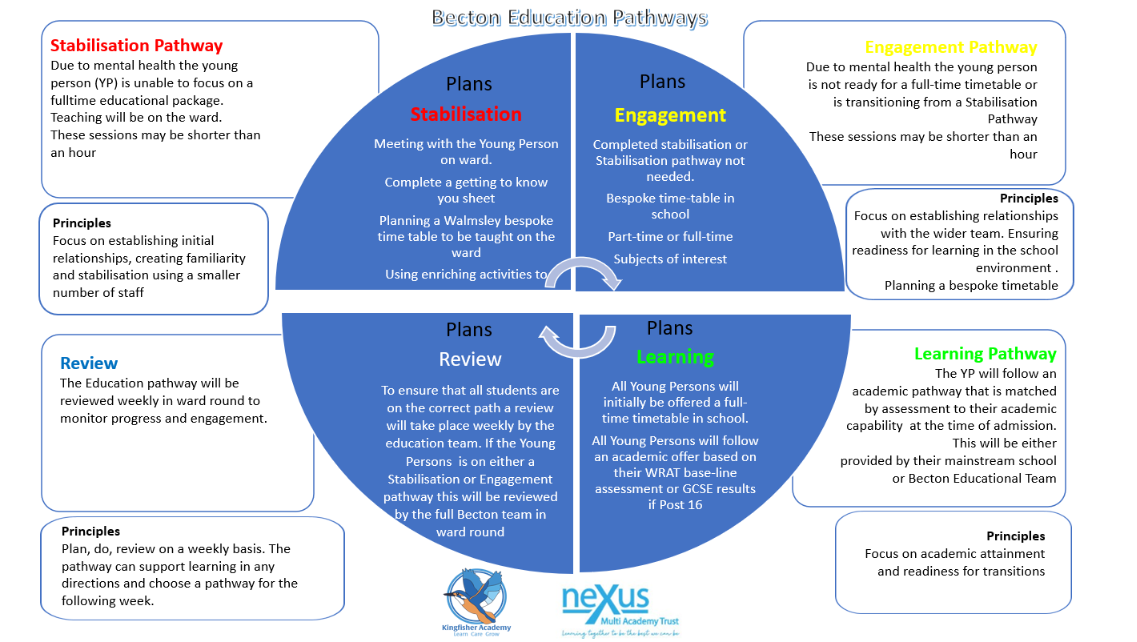 The curriculum model at Becton consists of 4 hour-long sessions daily. This includes a therapeutic offer which consists of Occupational Therapy, Your Voice, Psychology Therapy Group, Being Together, Art/Drama Therapy Group. These are delivered by NHS staff as part of the CYP’s timetabled day.